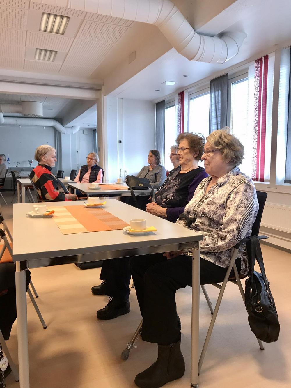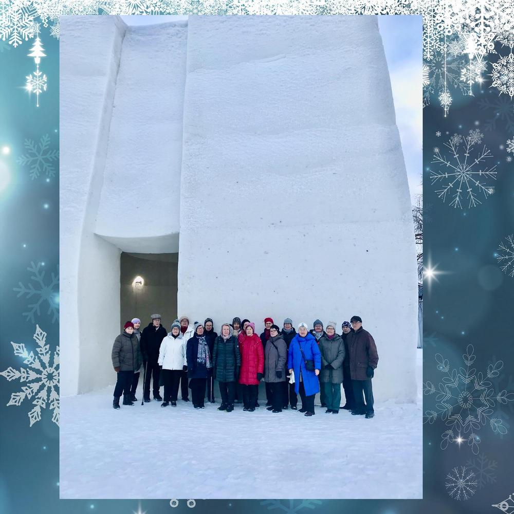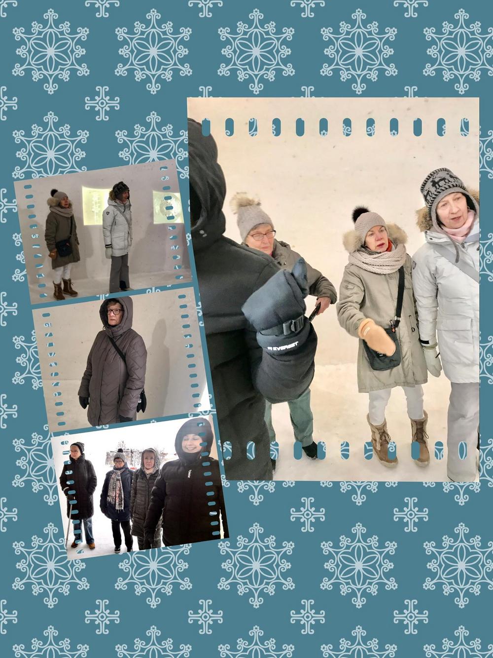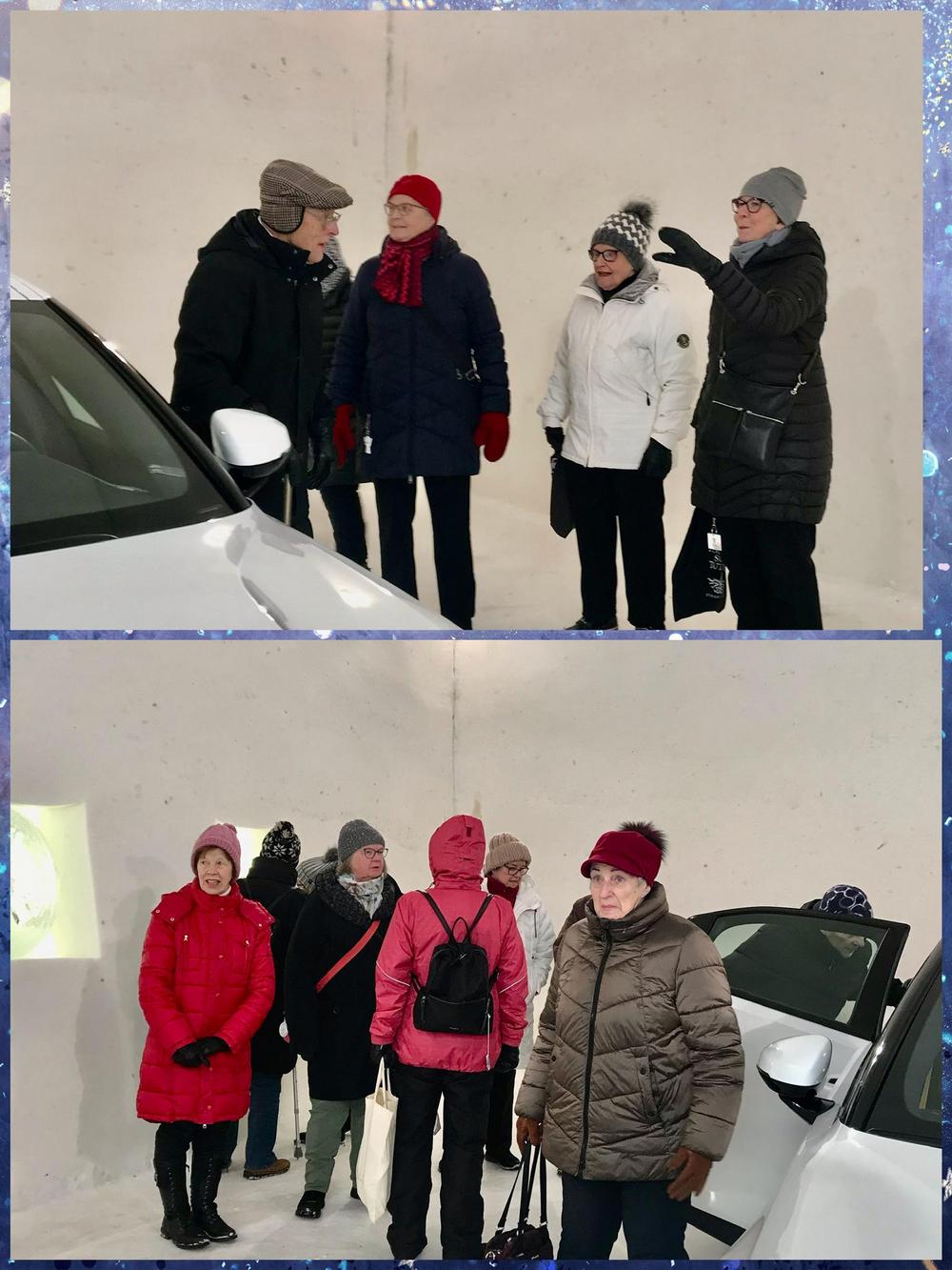 Rovaniemen seniorit jääkuutioon ja sen sisältöön tutustumassa