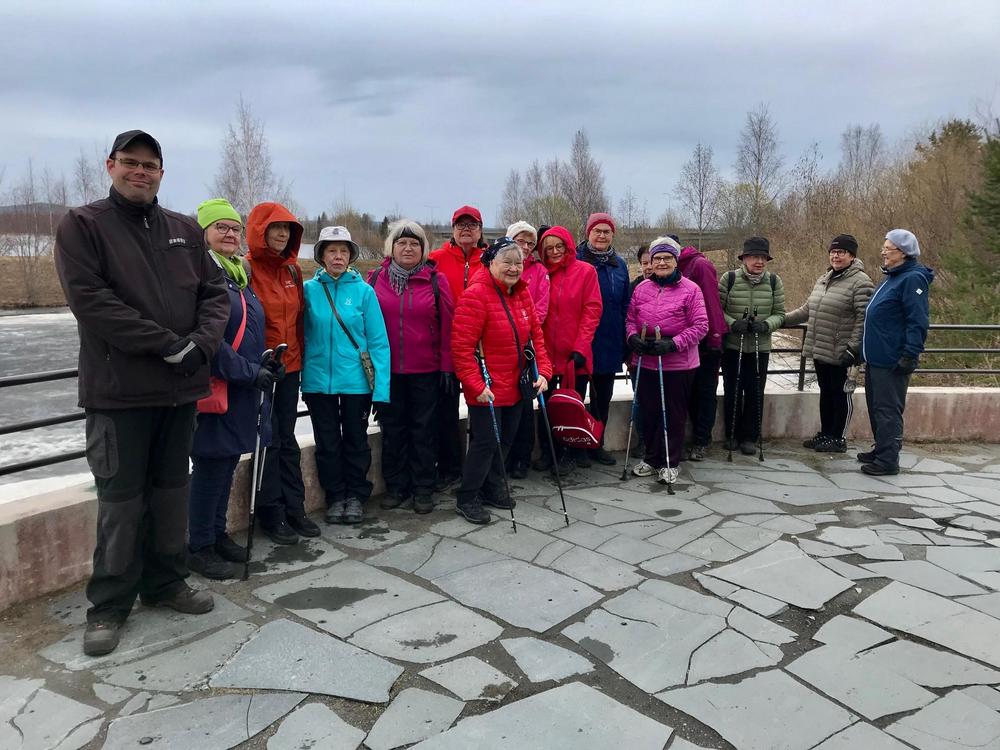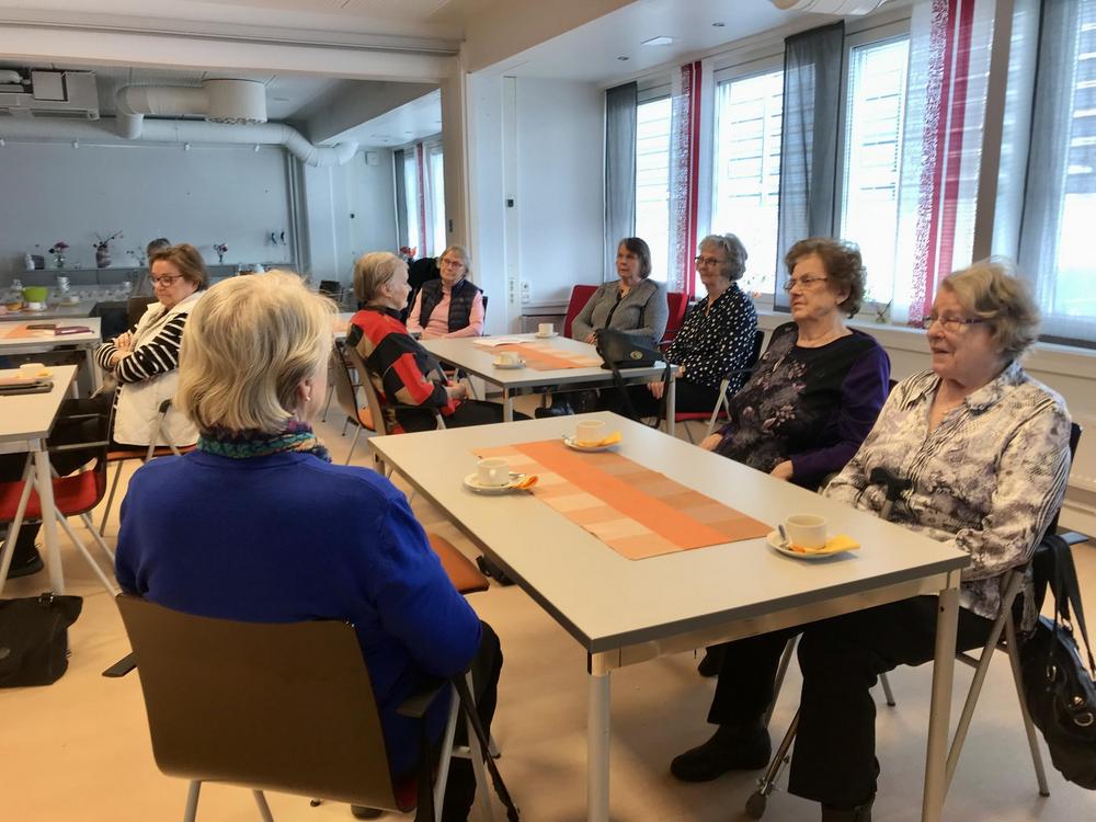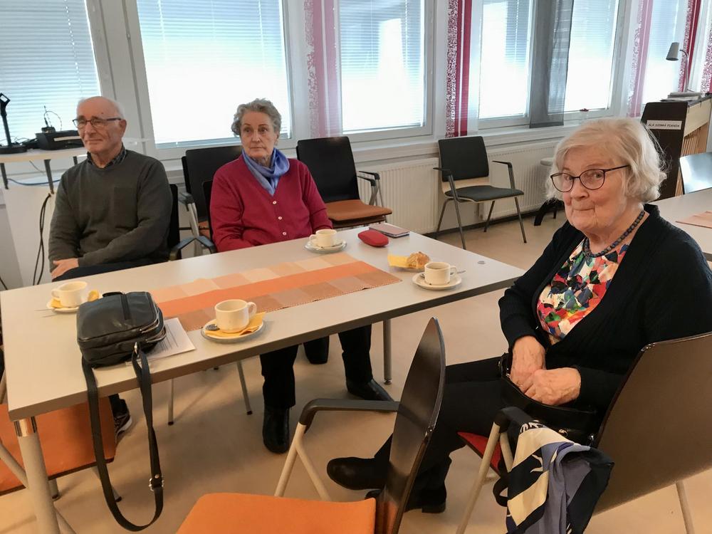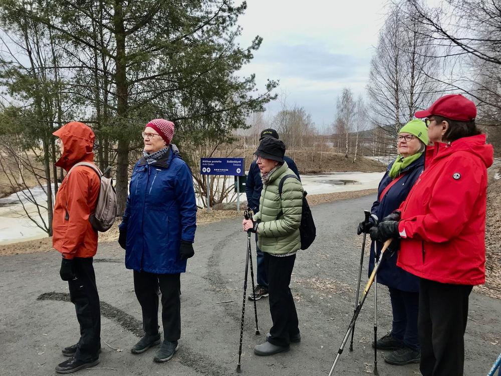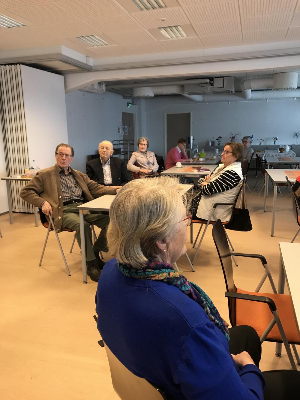 Rovaniemen seniorit jääkuutioon ja sen sisältöön tutustumassa