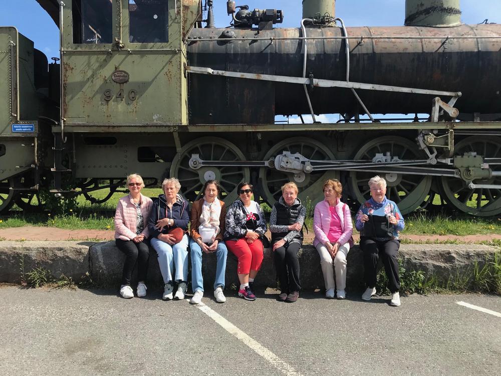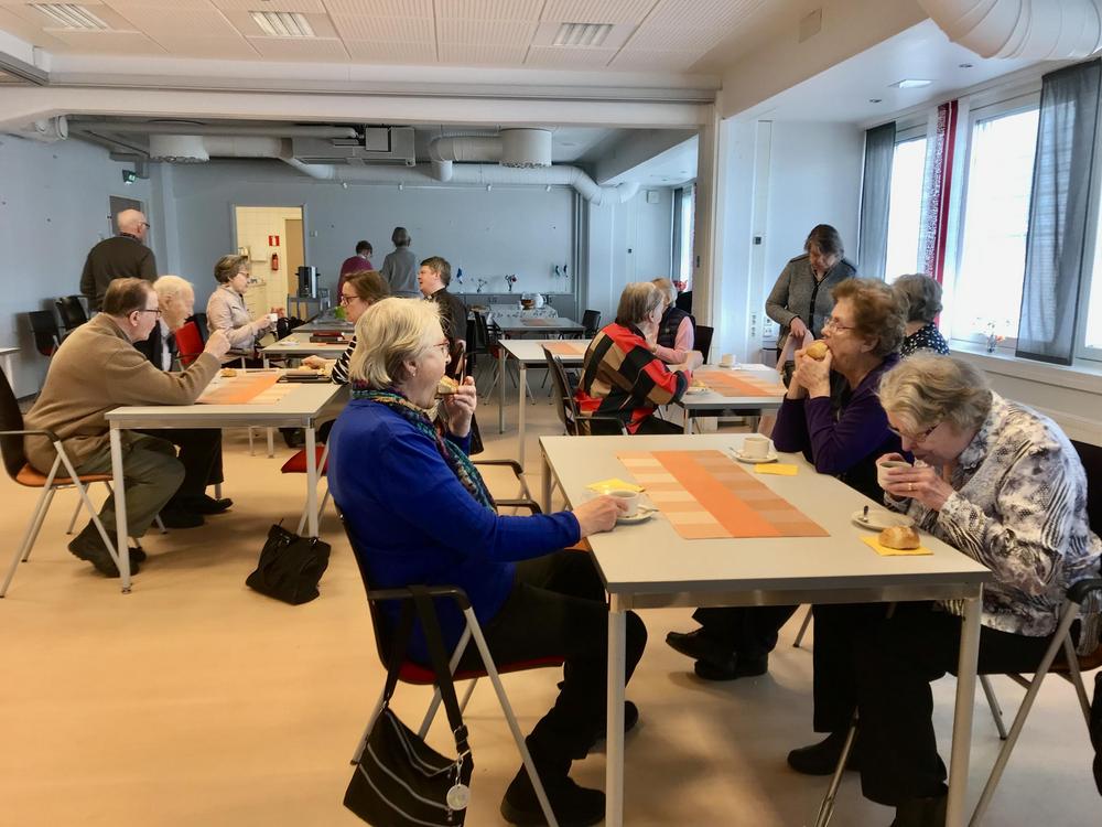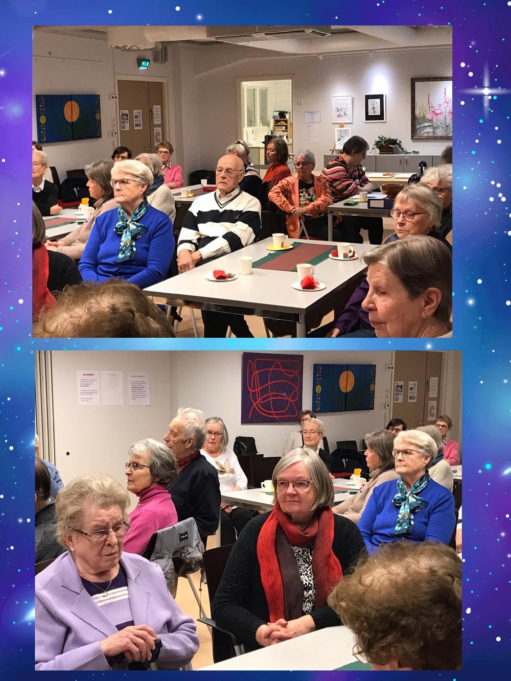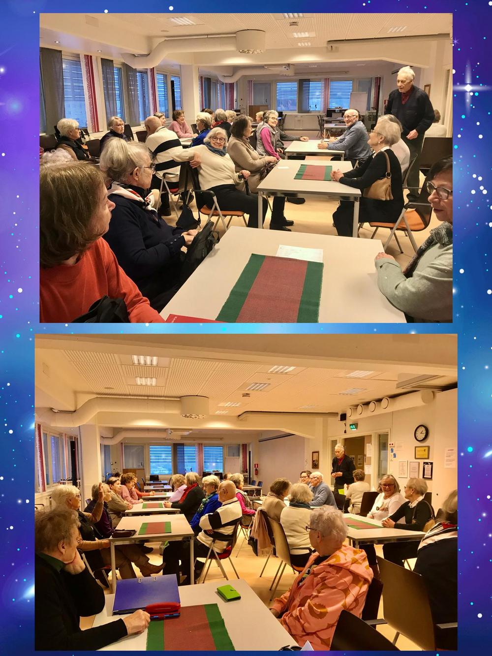 Rovaniemen seniorit jääkuutioon ja sen sisältöön tutustumassa
