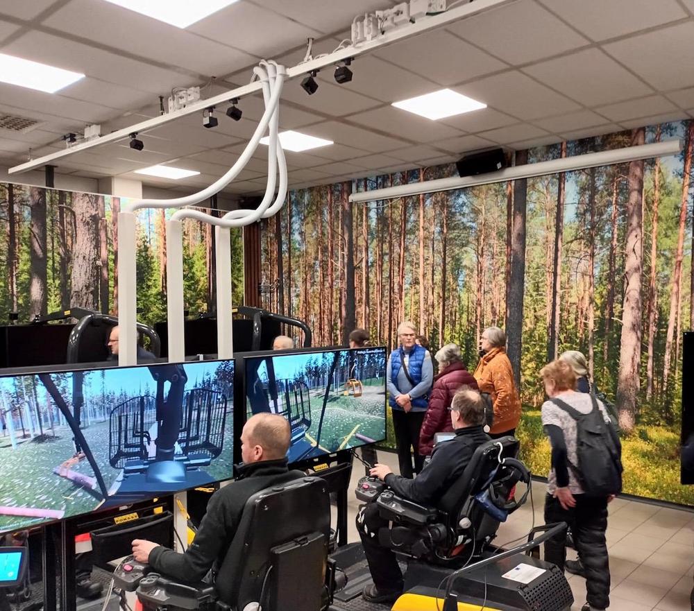 Tutustumassa REDU:n metsäkonekoulun uusiin laitteiiin ja opetukseen